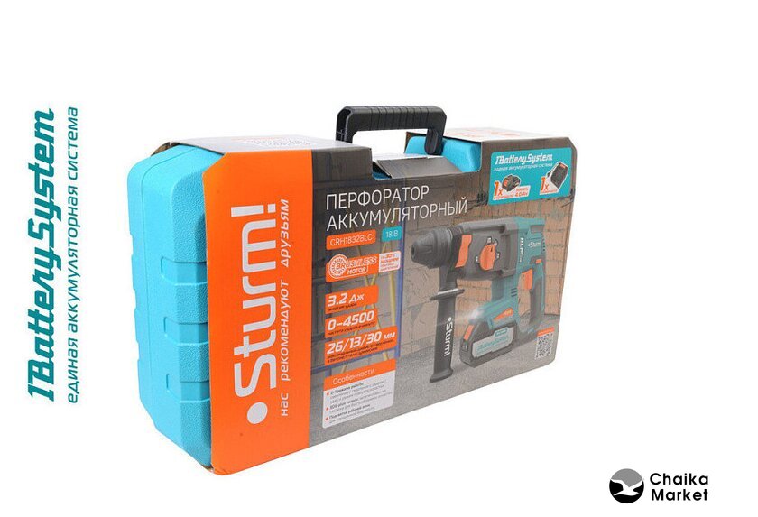 питание: аккумулятор, 4000 ударов/мин, энергия удара: 1.9 Дж, 3500 г