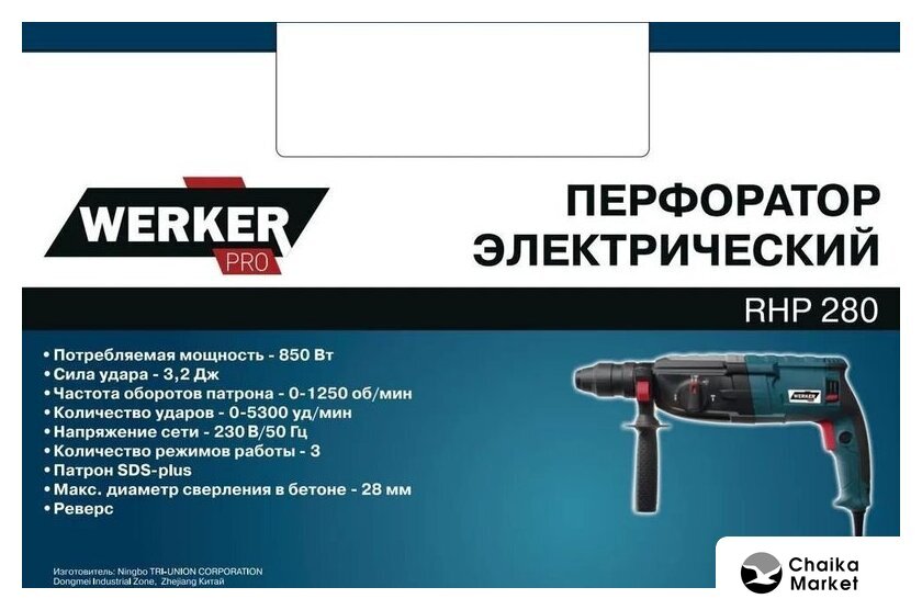 550 Вт, питание: сеть, 5800 ударов/мин, энергия удара: 1.7 Дж, 2200 г