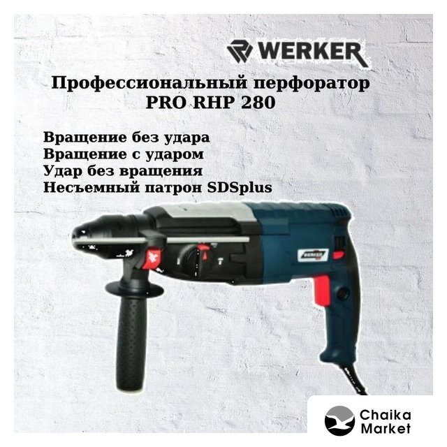 1300 Вт, питание: сеть, 4000 ударов/мин, энергия удара: 12 Дж, 6300 г