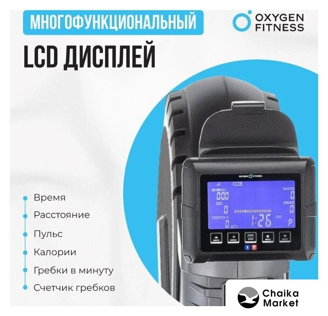 Показания на дисплее | время, калории, расстояние, количество гребков в минуту, счетчик гребков, пульс |