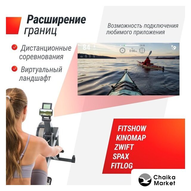 Особенности | Приложения для синхронизации: FitShow, Kinomap, ZWIFT, SPAX, FITLOG (подключение через Bluetooth) |