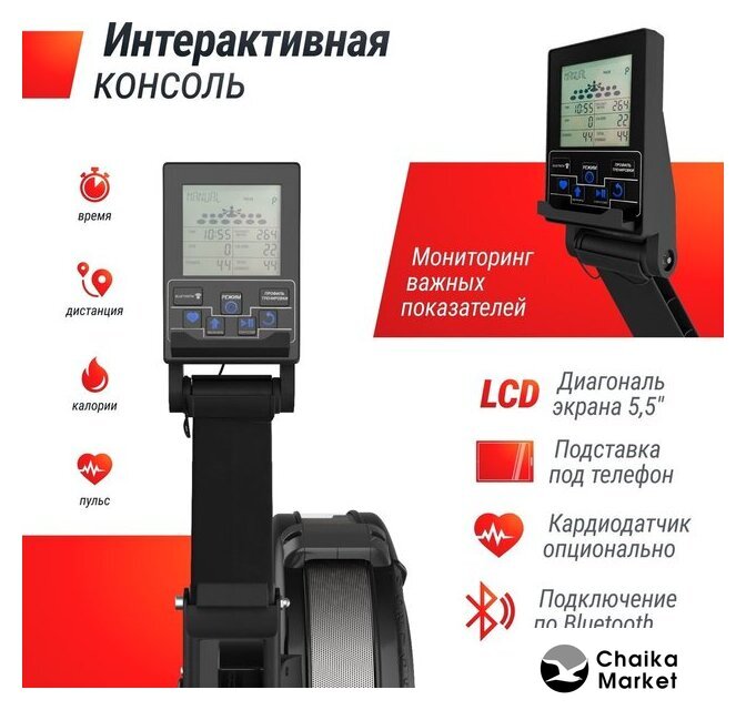 Отображаемая информация | время тренировки, пройденная дистанция, расход калорий, пульс, количество гребков |
