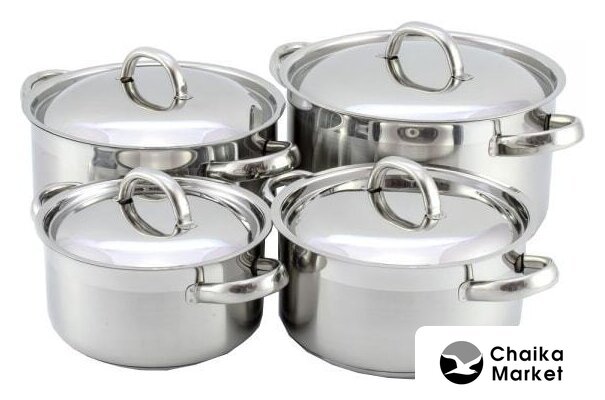 набор кастрюль, нержавеющая сталь, покрытие отсутствует, крышка стальная