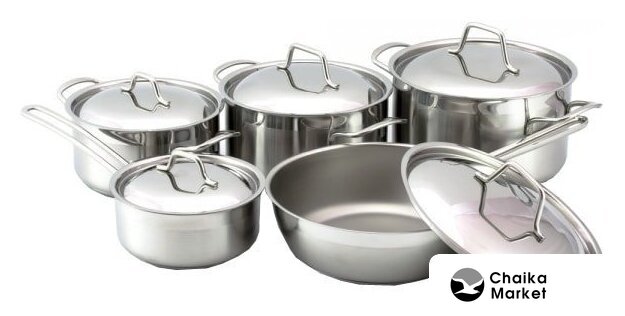 набор кастрюль, нержавеющая сталь, покрытие отсутствует, крышка стальная
