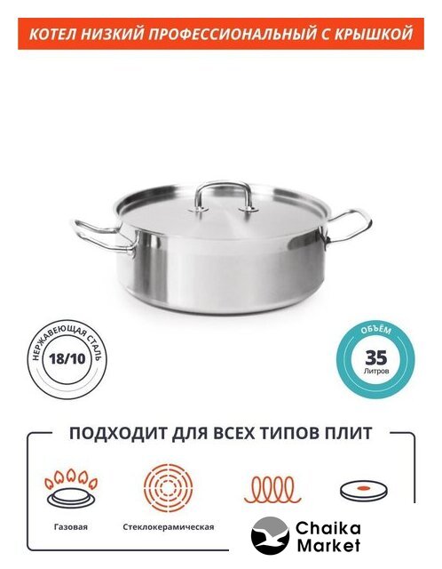 кастрюля, 5.4 л (24 см), нержавеющая сталь, покрытие отсутствует, крышка стеклянная