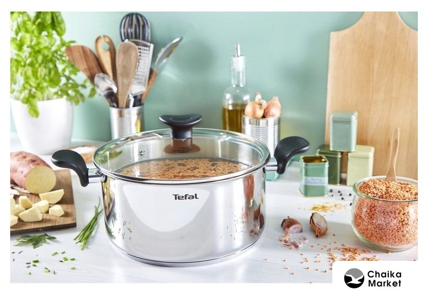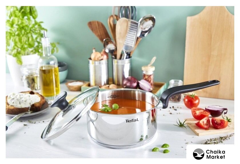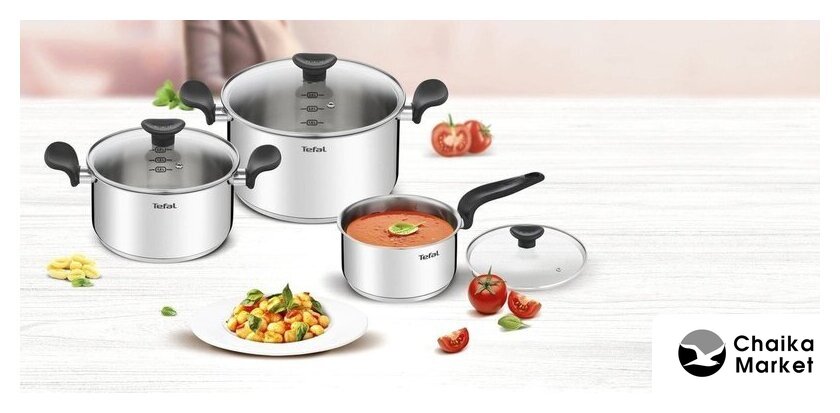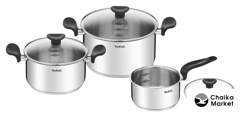 набор кастрюль, нержавеющая сталь, покрытие отсутствует, крышка стеклянная