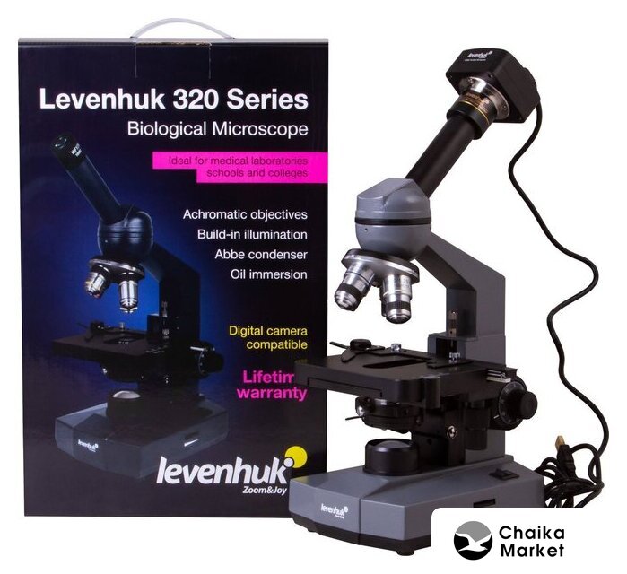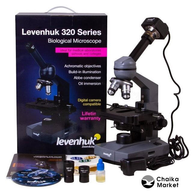 Состав набора | микроскоп, ахроматические объективы: 4х, 10х, 40х и 100х (масляная иммерсия), широкоугольные окуляры с указателем: WF10x и WF16x, фильтры: синий, зеленый, желтый, флакон иммерсионного масла, сетевой адаптер, пылезащитный чехол, цифровая камера, адаптер для камеры, USB-кабель для камеры, диск с программным обеспечением, инструкция по эксплуатации и гарантийный талон |