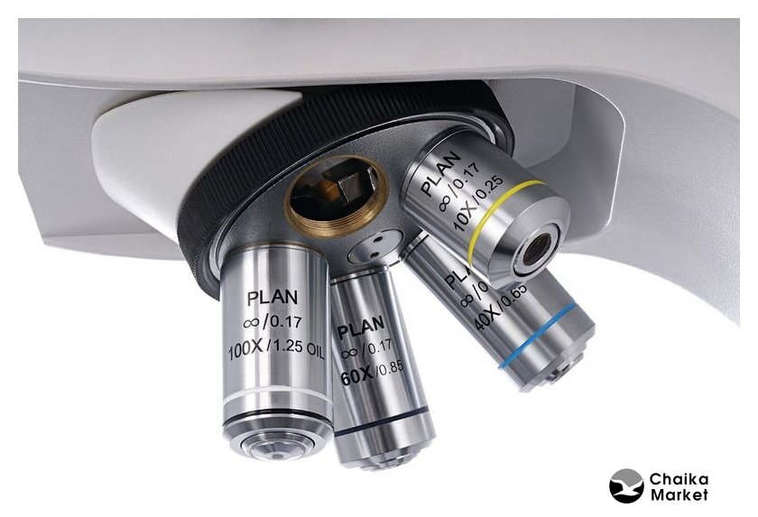 Состав набора | стойка микроскопа, бинокулярная насадка, планахроматические объективы, широкопольные окуляры, конденсор Аббе, фильтры, флакон с иммерсионным маслом, предохранители, сетевой шнур, пылезащитный чехол, инструкция. |
