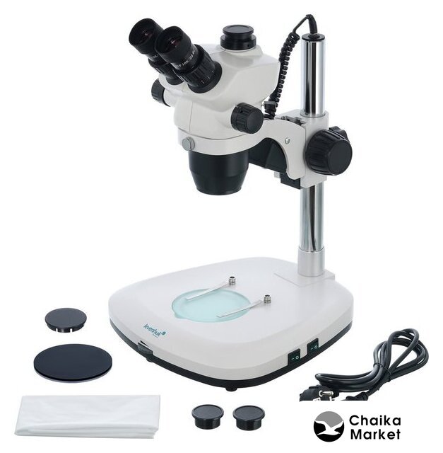 Состав набора | микроскоп, окуляры WF10x с наглазниками – 2 шт., панкратический объектив: 0,7x–4,5x, предметный столик из матового стекла, двусторонняя черно-белая пластина, шнур питания с сетевым адаптером, пылезащитный чехол, инструкция по эксплуатации и гарантийный талон |