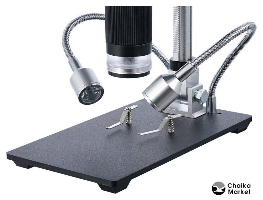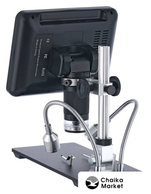 | Состав набора | ЖК-экран, штатив, основание с зажимами, осветители на гибких держателях, инфракрасный пульт дистанционного управления, ультрафиолетовый фильтр, кабель питания с переключателем и регулятором яркости подсветки, сетевой адаптер, инструменты и крепеж, инструкция по эксплуатации и гарантийный талон |