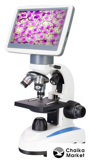 | Состав набора | микроскоп с цифровой камерой 2 Мпикс и ЖК-экраном, ахроматические объективы 4х, 10х, 40x, конденсор N.A. 0,65 с диском с диафрагмами, сетевой шнур, карта памяти SD 16 ГБ, адаптер и сетевой шнур для питания камеры, пылезащитный чехол, инструкция по эксплуатации и гарантийный талон |