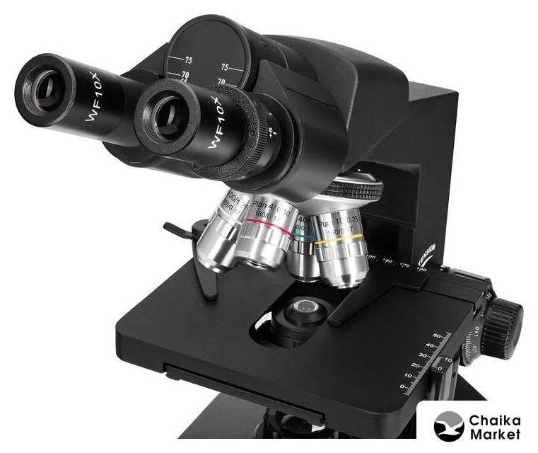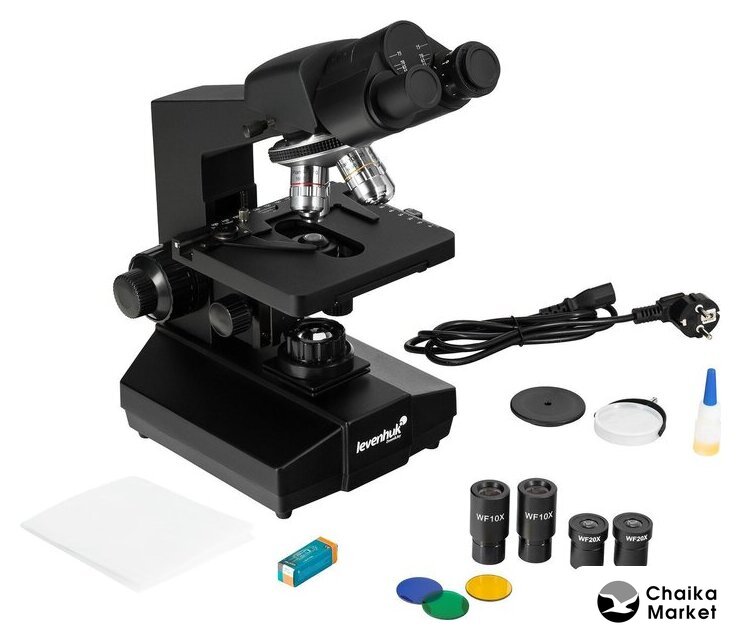 | Состав набора | бинокулярная визуальная насадка, планахроматические объективы 4x, 10x, 40xs, 100xs (масляный), окуляры WF10х (2 шт.), WF20х (2 шт.), светофильтры (синий, зеленый, желтый), флакон с иммерсионным маслом, зеркало, запасная галогенная лампочка, сетевой адаптер, пылезащитный чехол, инструкция по эксплуатации и гарантийный талон |