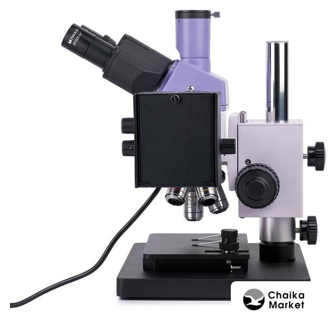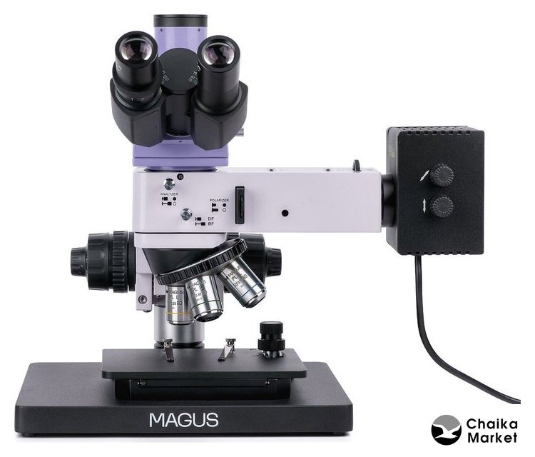 | Состав набора | штатив с механизмом фокусировки, предметный столик, револьверное устройство крепления объективов, осветитель отраженного света, тринокулярная визуальная насадка, объективы-планахроматы, окуляры, адаптер C-mount, ключ-шестигранник, блок питания, сетевой шнур, кабель осветителя, пылезащитный чехол, инструкция по эксплуатации и гарантийный талон. |