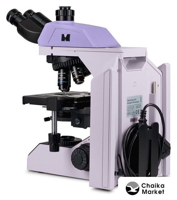 Состав набора | штатив со встроенным источником электропитания, источником проходящего света, механизмом фокусировки, предметным столиком, кронштейном конденсора и револьвером объективов; конденсор Аббе; тринокулярная визуальная насадка; объективы; окуляры; светофильтр; переходник под крепление C-mount; адаптер питания и сетевой шнур; пылезащитный чехол; инструкция по эксплуатации и гарантийный талон. |