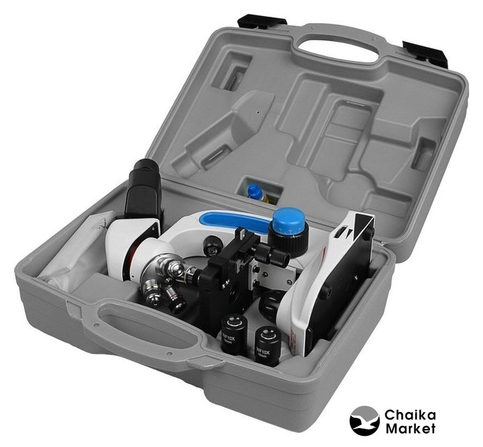 | Состав набора | штатив с осветителями, бинокулярная насадка, предметный столик, 4 объектива, 2 окуляра, заглушки, масло иммерсионное, пылезащитный чехол, жесткий кейс, руководство по эксплуатации |