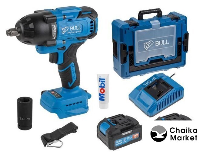 | Комплектация | -инструкция по эксплуатации-смазка;-ремешок;-ударная головка 22 мм;-уплотнительное кольцо;-штифт;-аккумулятор 4 Ач - 2 шт.;-зарядное устройство 4 А;-кейс Xcase. |