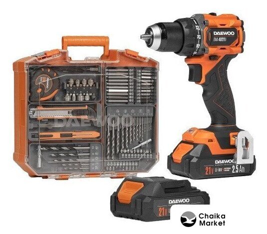 | Комплектация | - Дрель-шуруповерт - 1 шт.- Аккумулятор 2,5 Ач - 2 шт.- Зарядное устройство - 1 шт.- Комплект бит и инструмента - 1 шт.- Скоба для крепления - 1 шт.- Инструкция- Кейс |