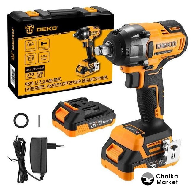 Комплектация | - Гайковерт - 1 шт.- Аккумулятор 3,0 Ач - 2 шт.- Зарядное устройство - 1 шт.- Скоба поясная - 1 шт.- Уплотнительное кольцо - 1 шт.- Штифт - 1 шт.- Руководство по эксплуатации.- Кейс. |