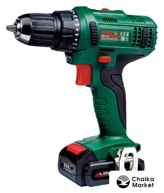 дрель-шуруповерт, аккумулятор 12V, Li-ion, патрон быстрозажимной, 2 скорости, режимы: сверление/шуруповерт