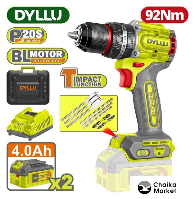 | Комплектация | - Дрель-шуруповерт ударная - 1 шт.- Аккумулятор 4,0 Ач DTLBP540 - 2 шт.- Зарядное устройство DTFCP502 - 1 шт.- Сверла по дереву 16, 19, 22 мм – 3 шт.- Сверла по бетону 5, 6, 8 мм – 3 шт.- Биты для ударного шуруповерта (PH2, SL6) – 2 шт.- Инструкция- Кейс |