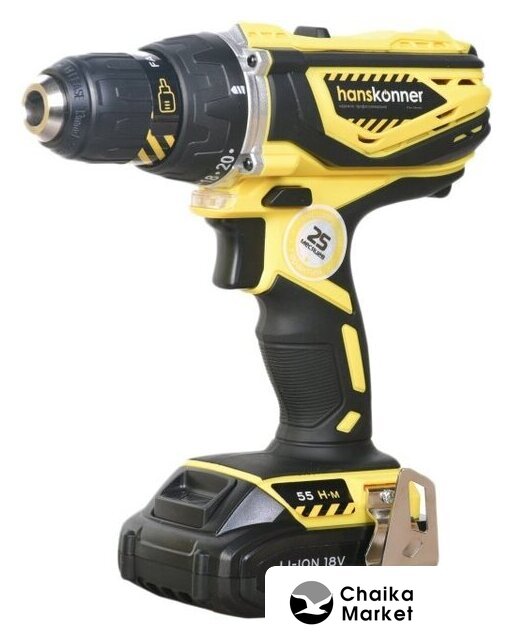 дрель-шуруповерт, аккумулятор 18V, Li-ion, патрон быстрозажимной, 2 скорости, режимы: сверление/шуруповерт