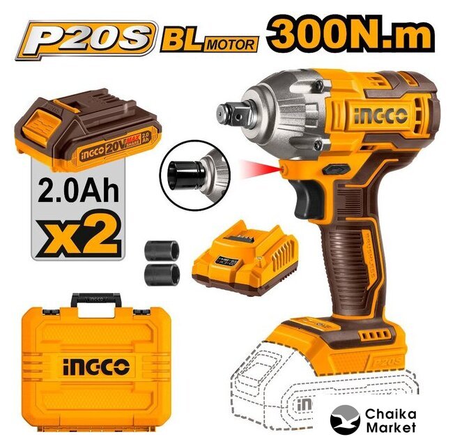 | Комплектация | - Торцевые головки 19, 21мм;- 2 АКБ;- Кейс. |