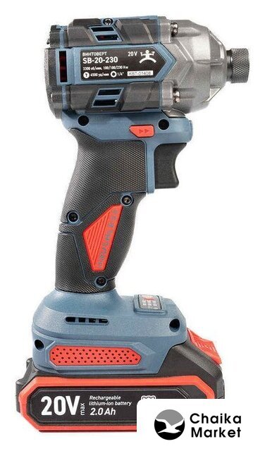 | Комплектация | - аккумуляторный винтоверт SB-20–230, - 2 аккумуляторные батареи: Li-Ion, 20 В/2Ач, - зарядное устройство от сети 230 В, - прочный пластиковый кейс |