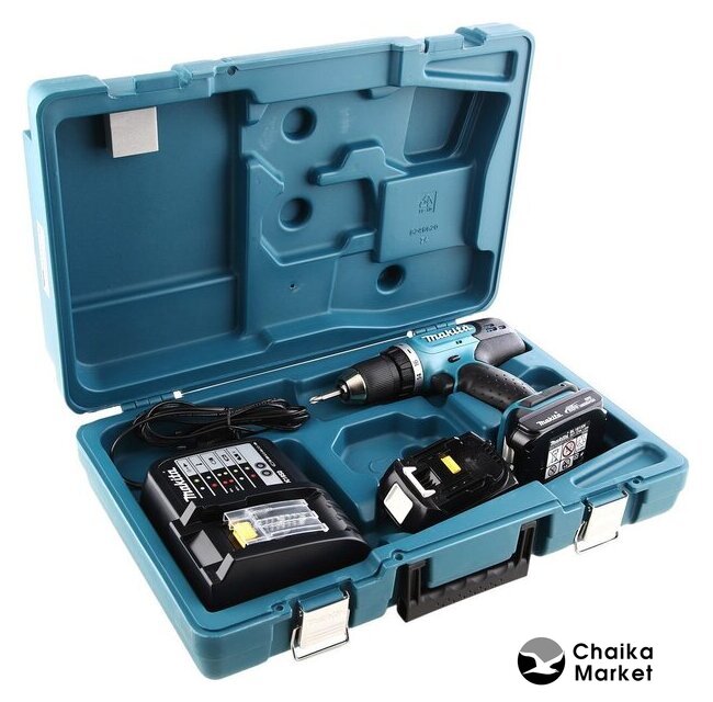 Комплектация | - Дрель-шуруповерт;- Зарядное устройство;- 2 аккумулятора 1,5 Ач;- Чемодан. |