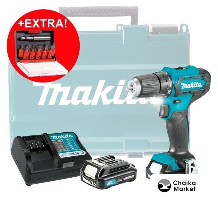 | Комплектация | - Аккумуляторная дрель-шуруповерт;- 2 аккумулятора 12 В 1,5 Ач;- Зарядное устройство;- Крепление для пояса;- Руководство по эксплуатации;- Кейс;- Набор бит D-31083. |