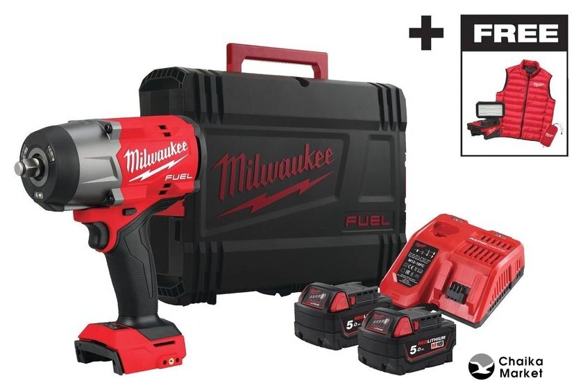 | Комплектация | - Аккумуляторный высокомоментный импульсный гайковерт с фиксацией фрикционным кольцом - 1 шт- Аккумулятор M18 B5 5.0 Ач - 2 шт- Быстрое зарядное устройство M12-18 FC - 1 шт- Аккумуляторный фонарь M18 ALIS-0 - 1 шт- Жилетка Milwaukee - 1 шт- Инструкция по эксплуатации- HD Кейс |