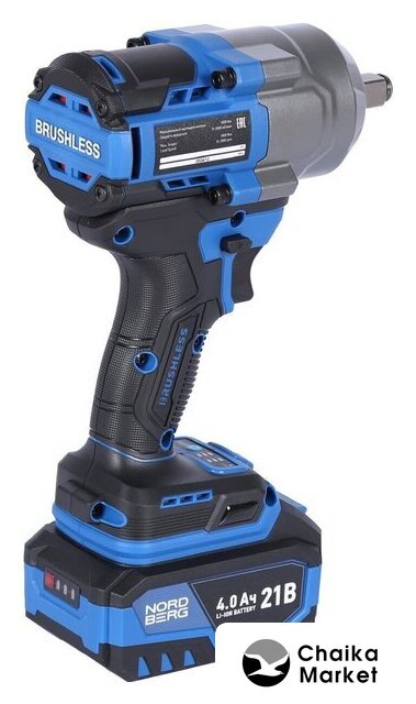 питание: аккумуляторный, Li-ion, 1900 об/мин, 1080 Н·м, напряжение аккумулятора: 21 В, ёмкость аккумулятора: 4 А·ч, аккумулятор в комплекте, 2550 г