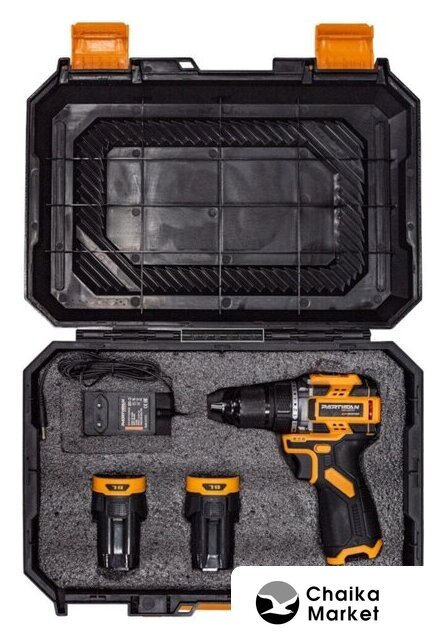 Комплектация | • дрель−шуруповерт• аккумулятор (2 шт)• зарядное устройство• кейс• руководство по эксплуатации• гарантийный талон |