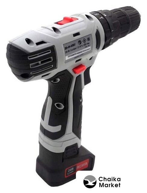 дрель-шуруповерт, аккумулятор 24V, Li-ion, патрон быстрозажимной, 2 скорости, режимы: сверление/шуруповерт