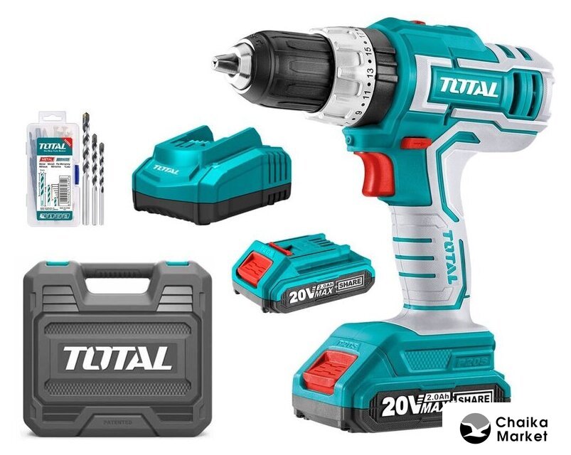 | Комплектация | - Дрель-шуруповерт;- Аккумулятор 2,0 А*ч - 2 шт;- Быстрое зарядное устройство;- Набор оснастки и крепежа - 50 шт;- Инструкция;- Кейс. |