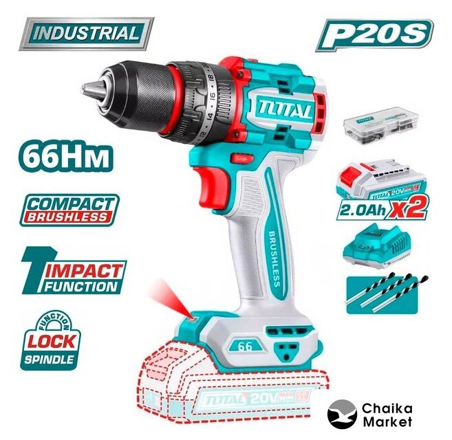 Комплектация | - Ударная дрель-шуруповерт - 1 шт.- Аккумулятор 2,0 Ач TFBLI20011 - 2 шт.- Зарядное устройство TFCLI2001 - 1 шт.- Аксессуары - 47 шт.- Сверло - 3 шт.- Инструкция.- Коробка. |