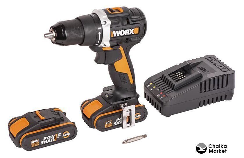 Комплектация | - Дрель-шуруповерт WORX WX102;- 2 аккумулятора Li-Ion емкостью 2 А*ч;- Зарядное устройство WORX 20 В 2A;- Крюк для крепления на поясе;- Двусторонняя бита;- Кейс для переноски. |