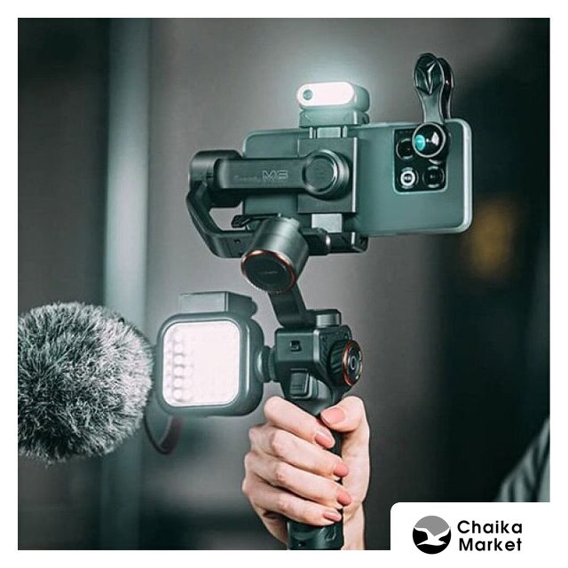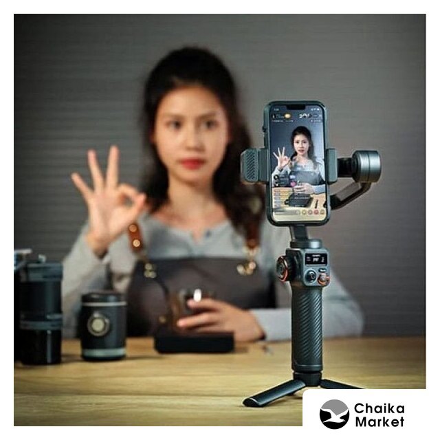 стабилизатор (стедикам), пластик/металл, подключение по Bluetooth, спуск: кнопка, присутствуют интеллектуальные режимы съемки