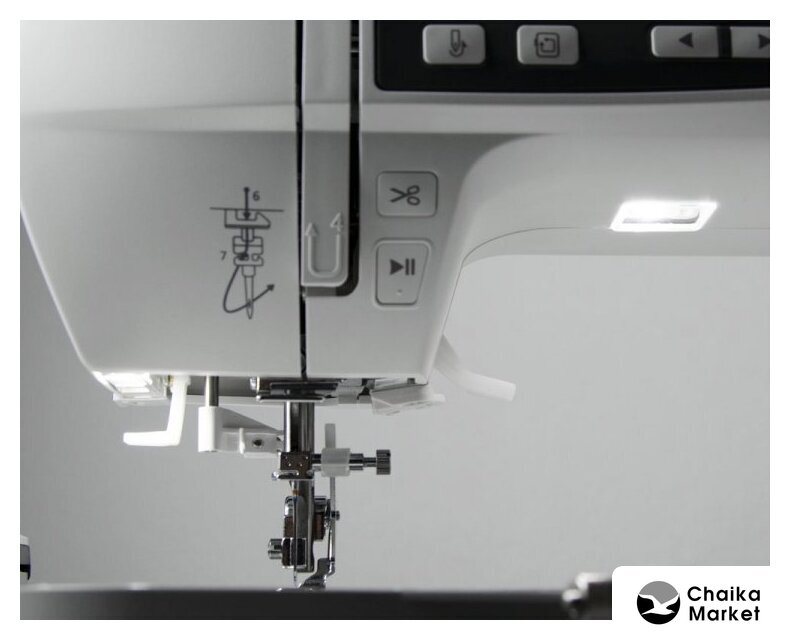 компьютерная, горизонтальный ротационный челнок, автоматическое выполнение петли, швейные операции: имитация оверлочной строчки/потайная строчка/трикотажная строчка/декоративная строчка/алфавит (латиница)/алфавит (кирилица)