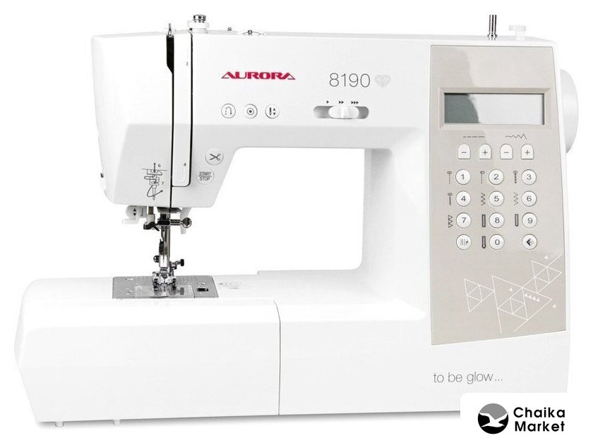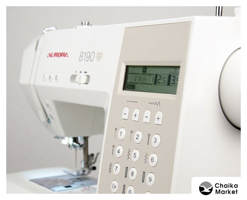 электронная, горизонтальный ротационный челнок, автоматическое выполнение петли, швейные операции: имитация оверлочной строчки/потайная строчка/трикотажная строчка/декоративная строчка/алфавит (латиница)/алфавит (кирилица)