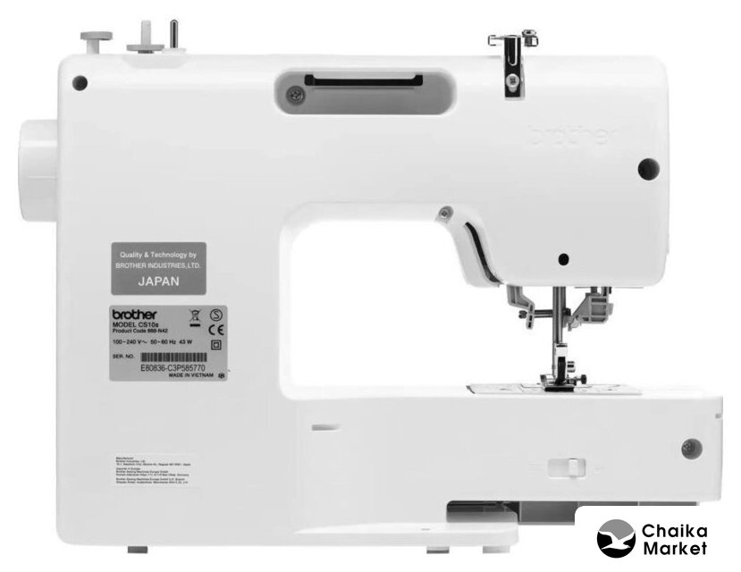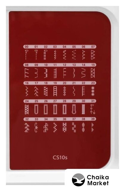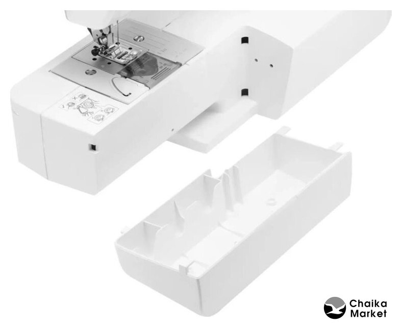 | Комплектация | комплект игл, шпулька, педаль, отвертка, щеточка (для чистки), инструкция, вспарыватель, подсветка рабочей зоны, адаптер питания, держатель катушки, дополнительный катушечный стержень |
