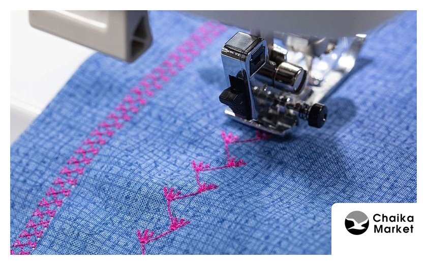 компьютерная (с вышивальным блоком), горизонтальный ротационный челнок, автоматическое выполнение петли, швейные операции: имитация оверлочной строчки/потайная строчка/трикотажная строчка/декоративная строчка/алфавит (латиница)