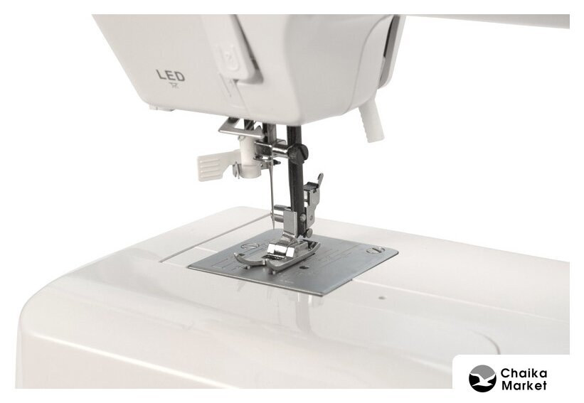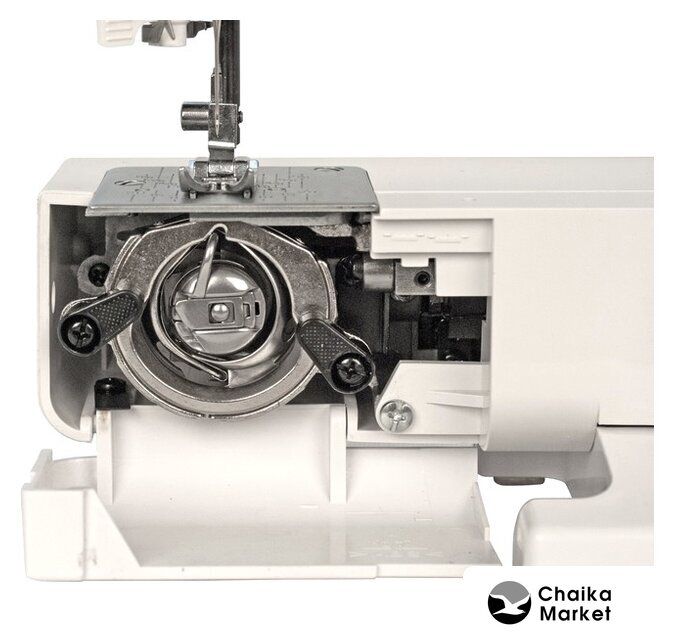 электромеханическая, вертикальный качающийся челнок, полуавтоматическое выполнение петли, швейные операции: имитация оверлочной строчки/потайная строчка/трикотажная строчка/декоративная строчка