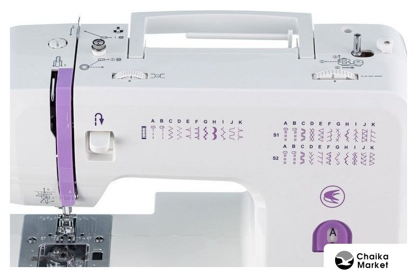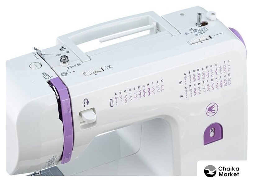 электромеханическая, вертикальный качающийся челнок, полуавтоматическое выполнение петли, швейные операции: потайная строчка/трикотажная строчка/декоративная строчка