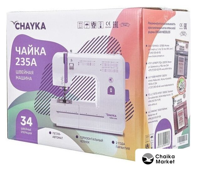 электромеханическая, вертикальный качающийся челнок, полуавтоматическое выполнение петли, швейные операции: имитация оверлочной строчки/потайная строчка/трикотажная строчка