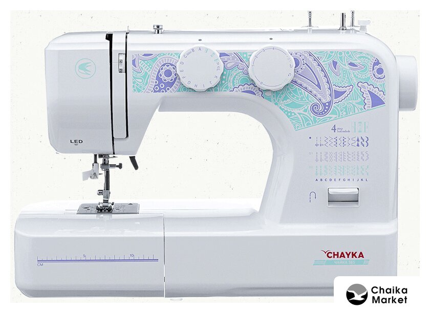электромеханическая, вертикальный качающийся челнок, полуавтоматическое выполнение петли, швейные операции: имитация оверлочной строчки/трикотажная строчка/декоративная строчка