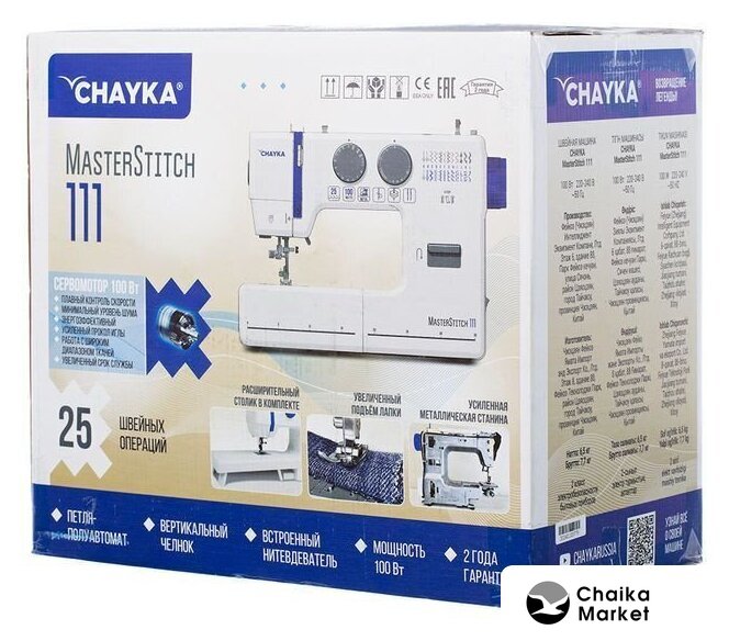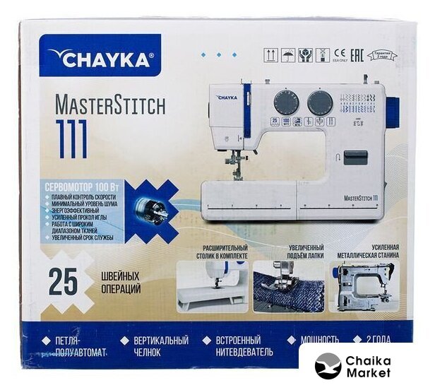 электромеханическая, вертикальный качающийся челнок, полуавтоматическое выполнение петли, швейные операции: имитация оверлочной строчки/потайная строчка/трикотажная строчка