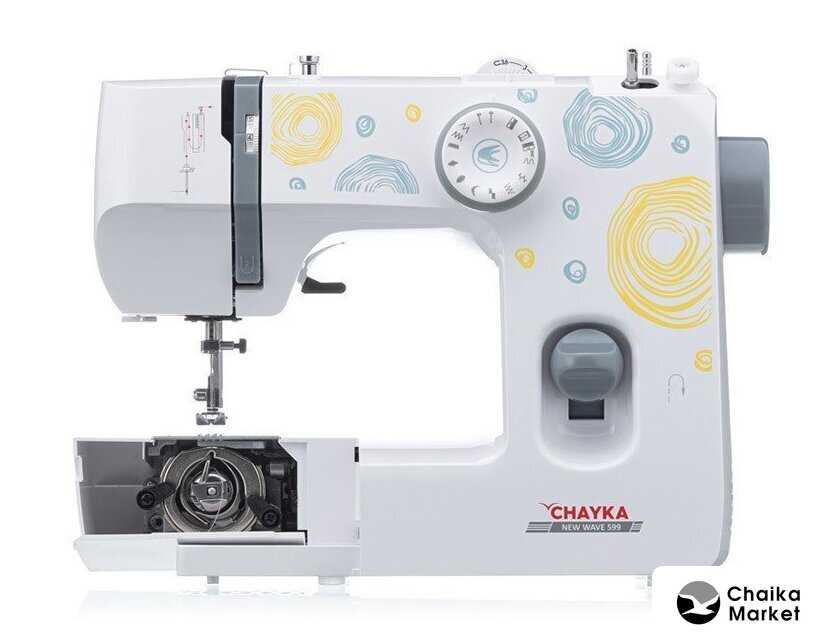 электромеханическая, горизонтальный ротационный челнок, полуавтоматическое выполнение петли, швейные операции: имитация оверлочной строчки/потайная строчка/декоративная строчка