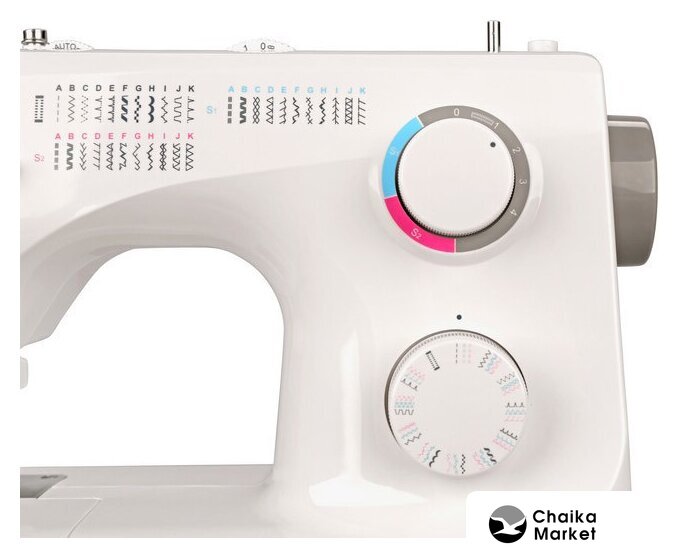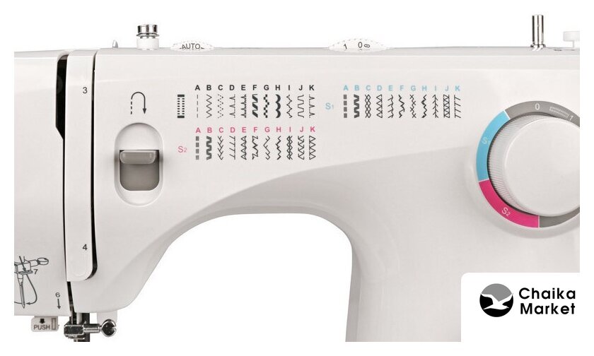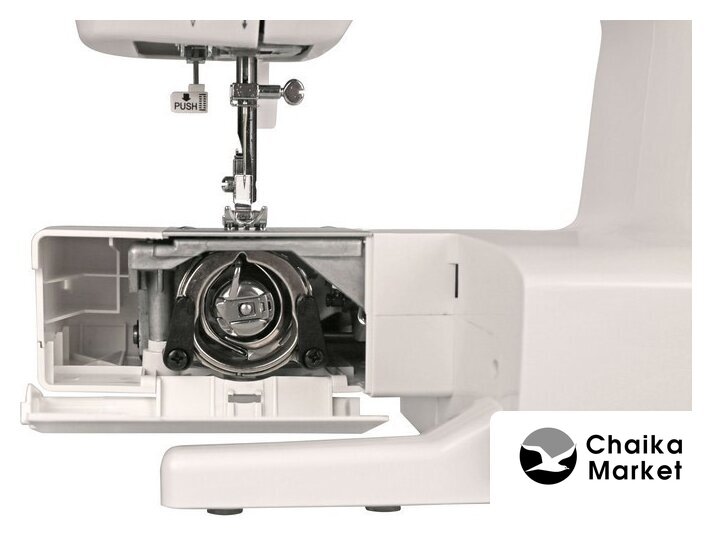 электромеханическая, горизонтальный ротационный челнок, полуавтоматическое выполнение петли, швейные операции: имитация оверлочной строчки/потайная строчка/трикотажная строчка/декоративная строчка
