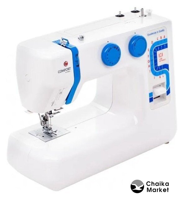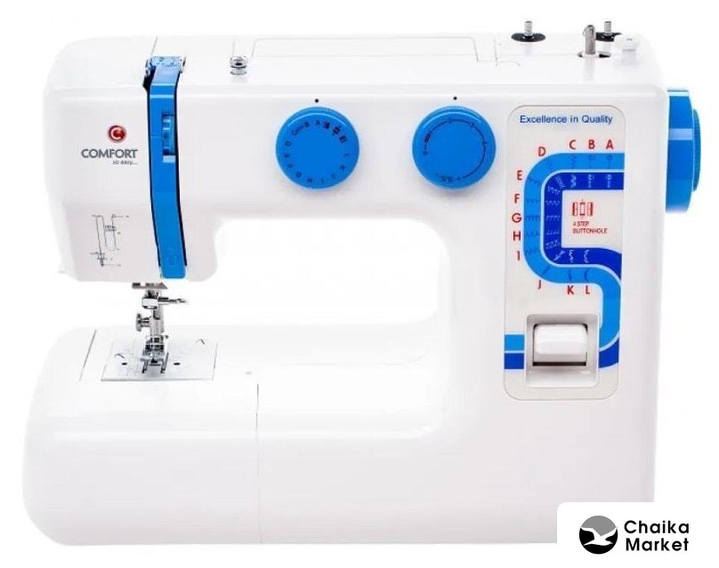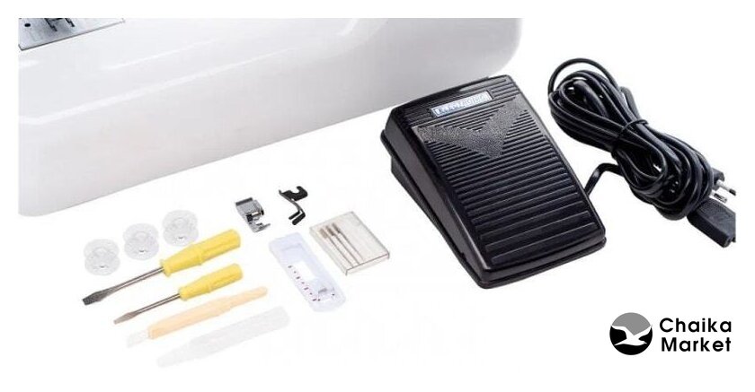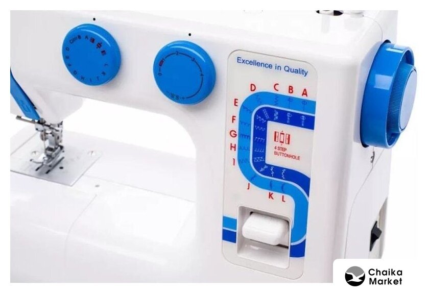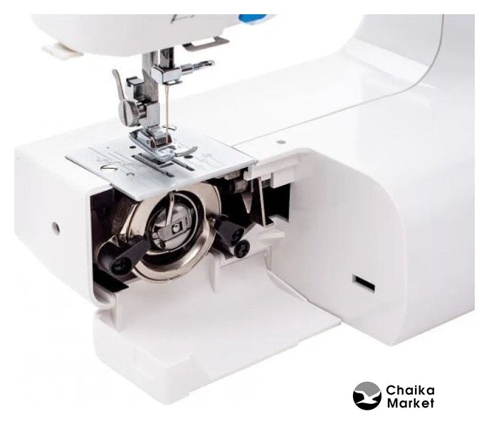 электромеханическая, вертикальный качающийся челнок, полуавтоматическое выполнение петли, швейные операции: имитация оверлочной строчки/потайная строчка/трикотажная строчка/декоративная строчка