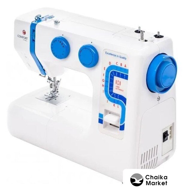 электромеханическая, вертикальный качающийся челнок, полуавтоматическое выполнение петли, швейные операции: имитация оверлочной строчки/потайная строчка/трикотажная строчка
